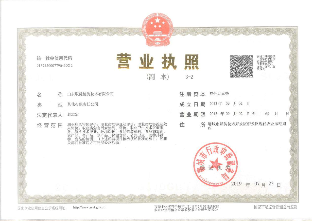 更多 山東職健檢測技術有限公司 山東職健檢測技術有限公司成立于2013年9月,注冊資金6000萬元,地址位于聊城市經濟技術開發區研發路現代農業生態示范園內?,F具備資質:1、山東省衛生健康委員會頒發的職業衛生技術服務機構資質證書((魯)衛職技字(2021)第059號)2、山東省市場監督管理局頒發的檢驗檢測機構資質認定證書(證書編號:221521343226)3、山東省農業農村廳農產品質量安全檢測機構CATL證書(證書編號:【2018】農質檢核(魯)字第0047號)4、山東省畜牧獸醫局農產品質量安全檢測機構CATL證書(證書編號:【2018】農質檢核(魯牧)字第0019號),公司現有員工60余人,高級職稱7人,中級職稱18人,其余人員均具備相關技能證書,是一支高素質的專業技術隊伍。技術人員專業涉及:食品、食品發酵工程、食品生物技術、化學、化學工程、生物、環境工程、環境保護、藥學等多個專業。公司建立了氣相色譜室、液相色譜室、理化分析實驗室、儀器分析實驗室、常規微生物分析實驗室、致病菌分析實驗室、大型儀器室,各實驗室功能布局合理,設置了樣品制備接受室、前處理室、試劑室、常規儀器室等區域,做到了相關區域有效隔離,能夠避免交叉污染,確保檢測結果的準確可靠。擁有氣相色譜質譜聯用儀、液相色譜質譜聯用儀、電感耦合等離子體質譜儀、氣相色譜儀、液相色譜儀、原子吸收分光光度計等先進的檢驗及檢測儀器500余臺套。 ... |